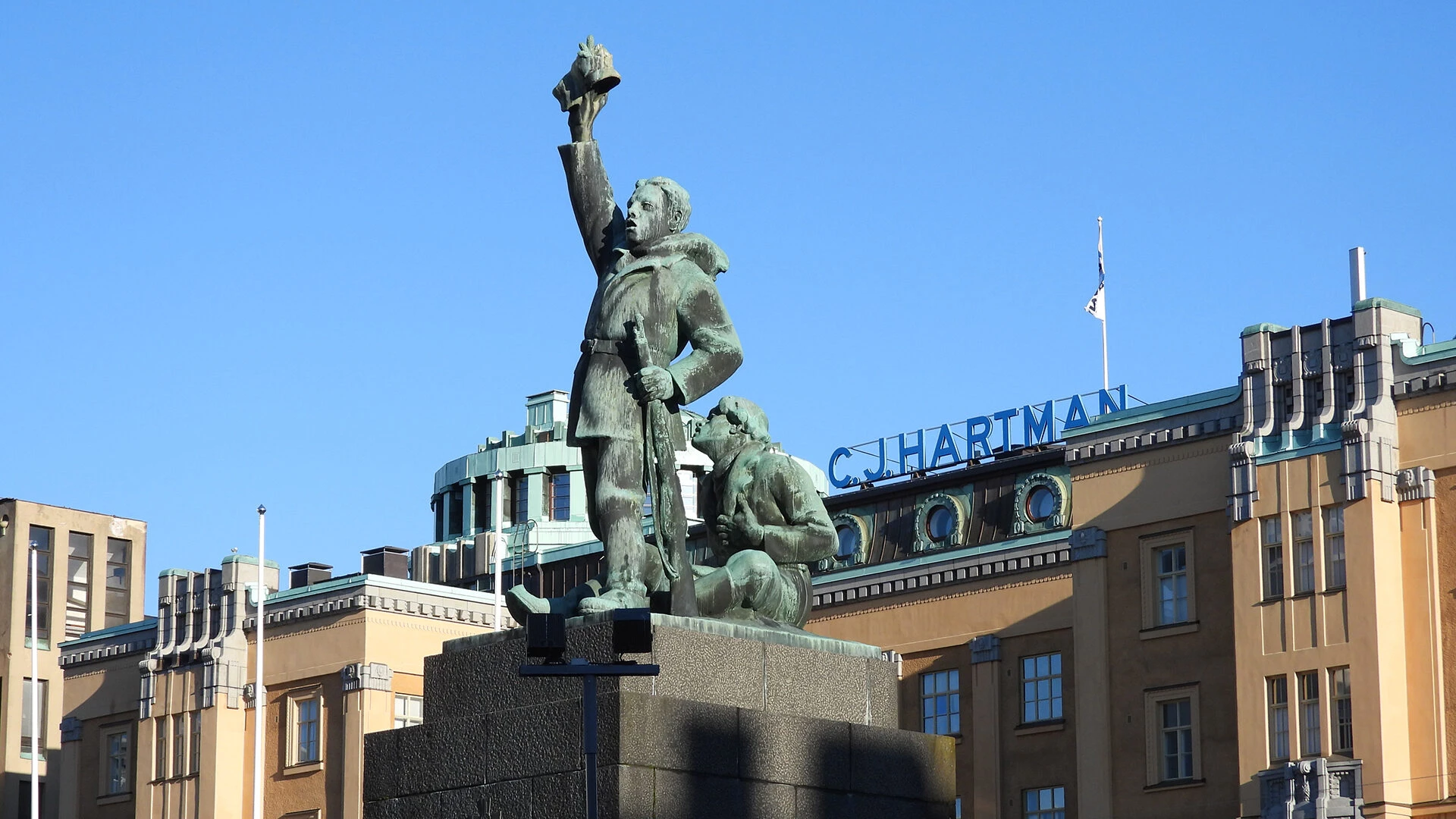 Lähtö torilta Suomen vapaudenpatsaan luota.